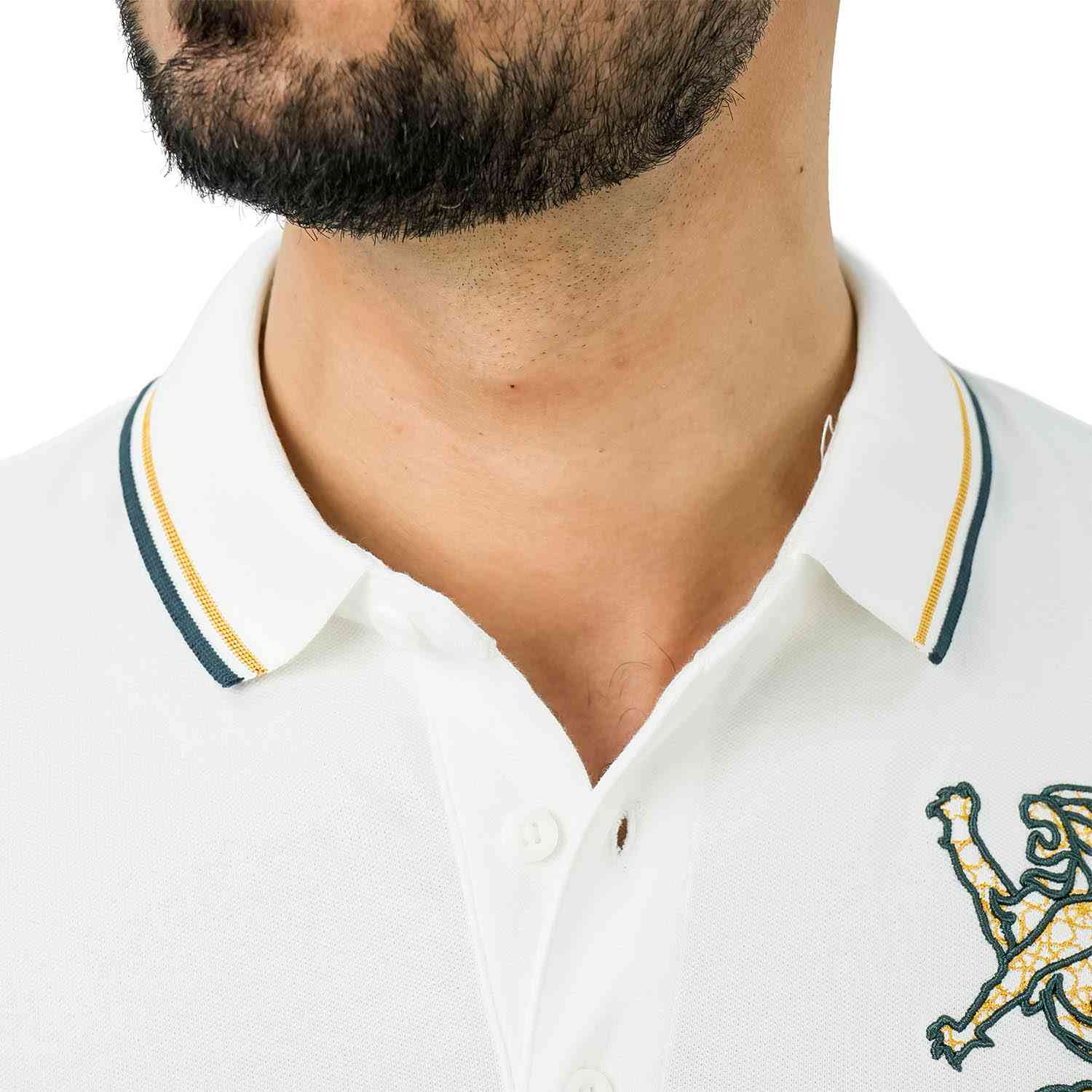 قميص بولو رجالي بقصة ضيقة مزين بتطريز أسد ثلاثي الأبعاد بارز