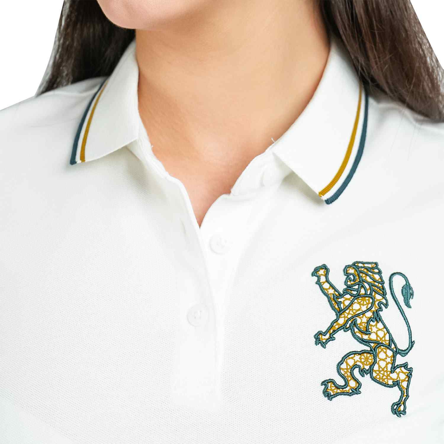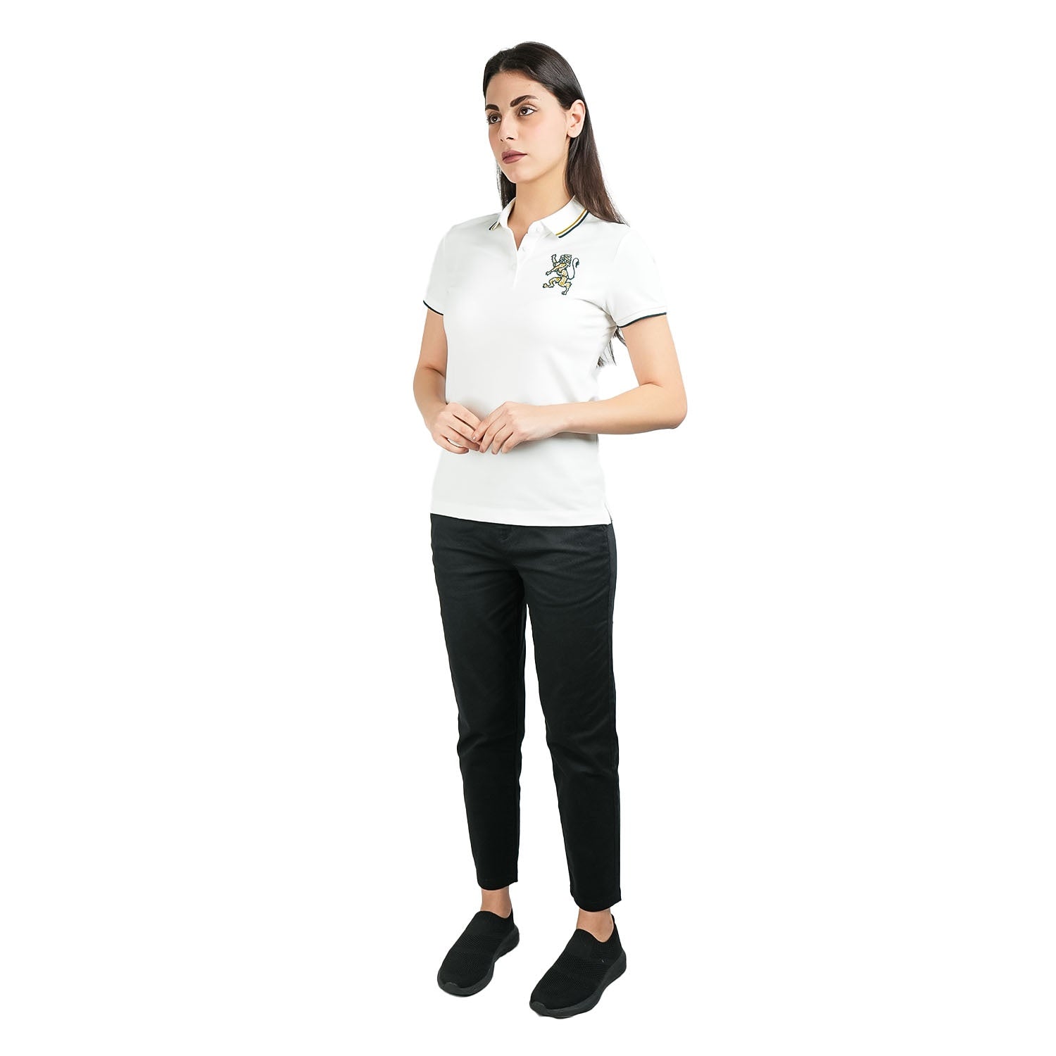 - قميص بولو نسائي مصنوع من قماش البيكيه المحبوك (97% قطن، 3% ليكرا)