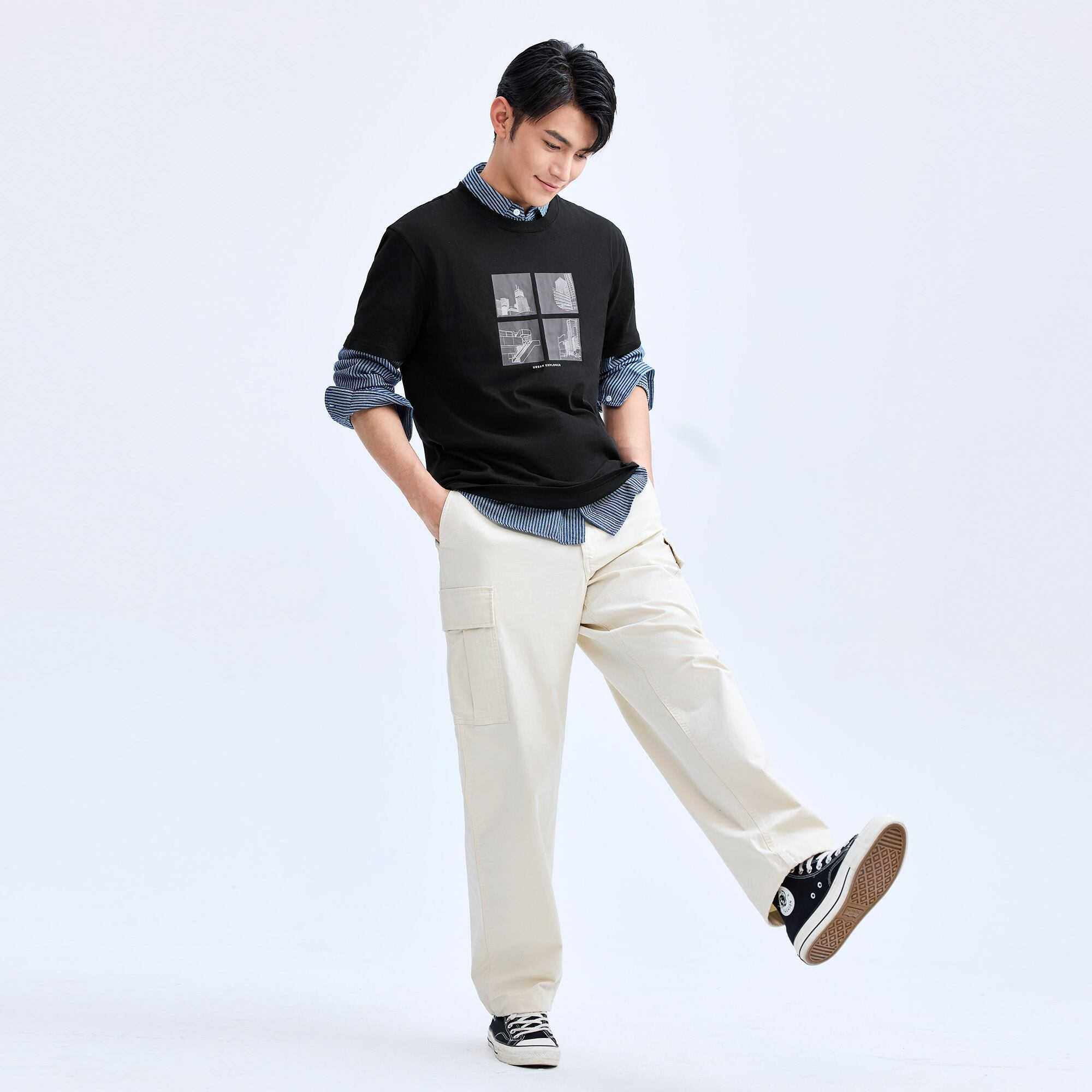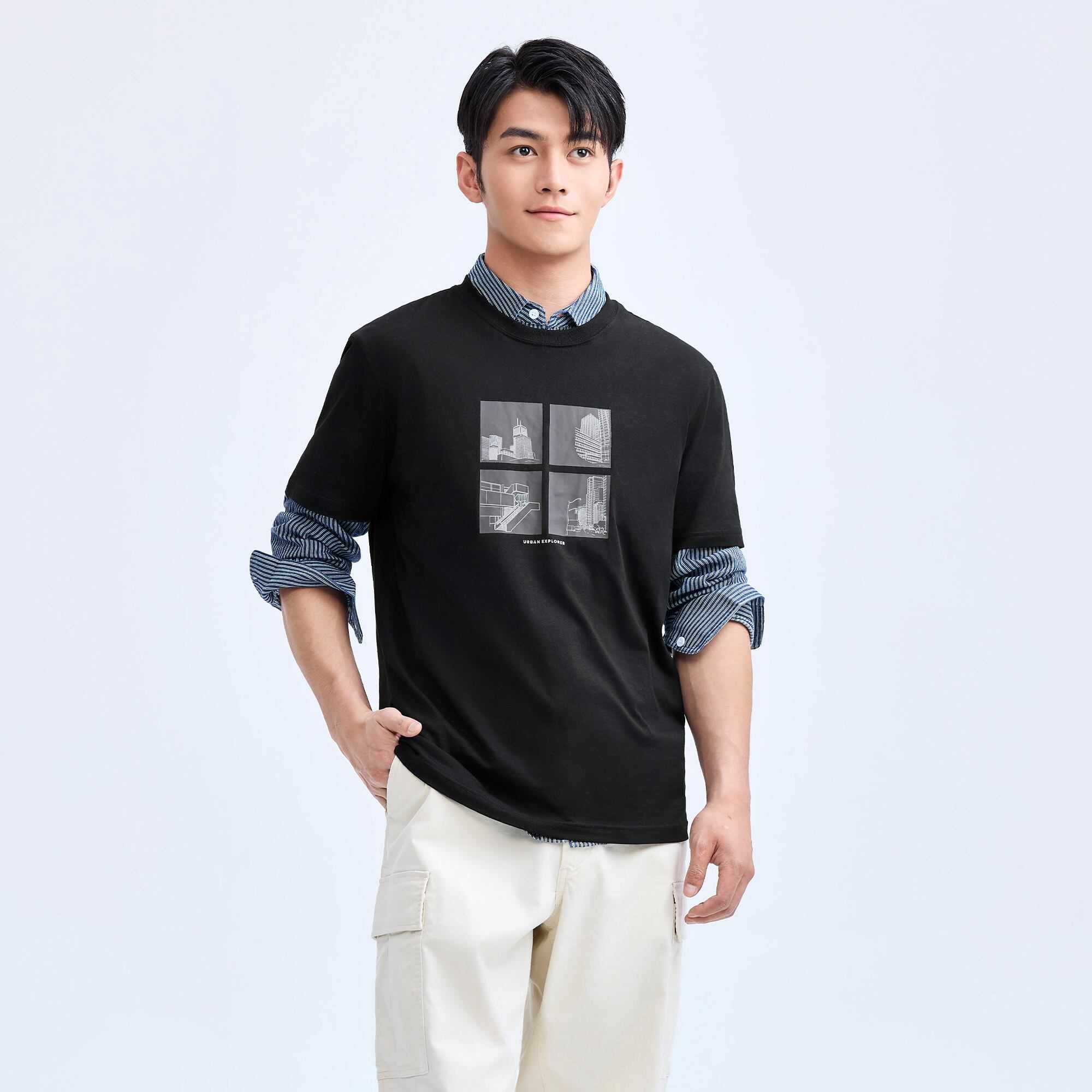 - A classic from the Print Tee collection, this t-shirt features a distinctive graphic print for a touch of modern, urban style. It is designed with a comfortable regular fit, a timeless crew neck, and versatile short sleeves.