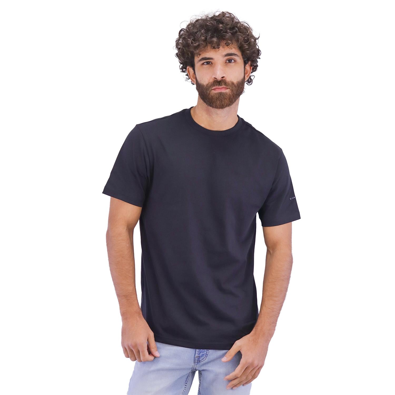 - This t-shirt is made from 100% cotton single jersey fabric, known for its soft and comfortable feel. It features a classic crew neck and short sleeves.
