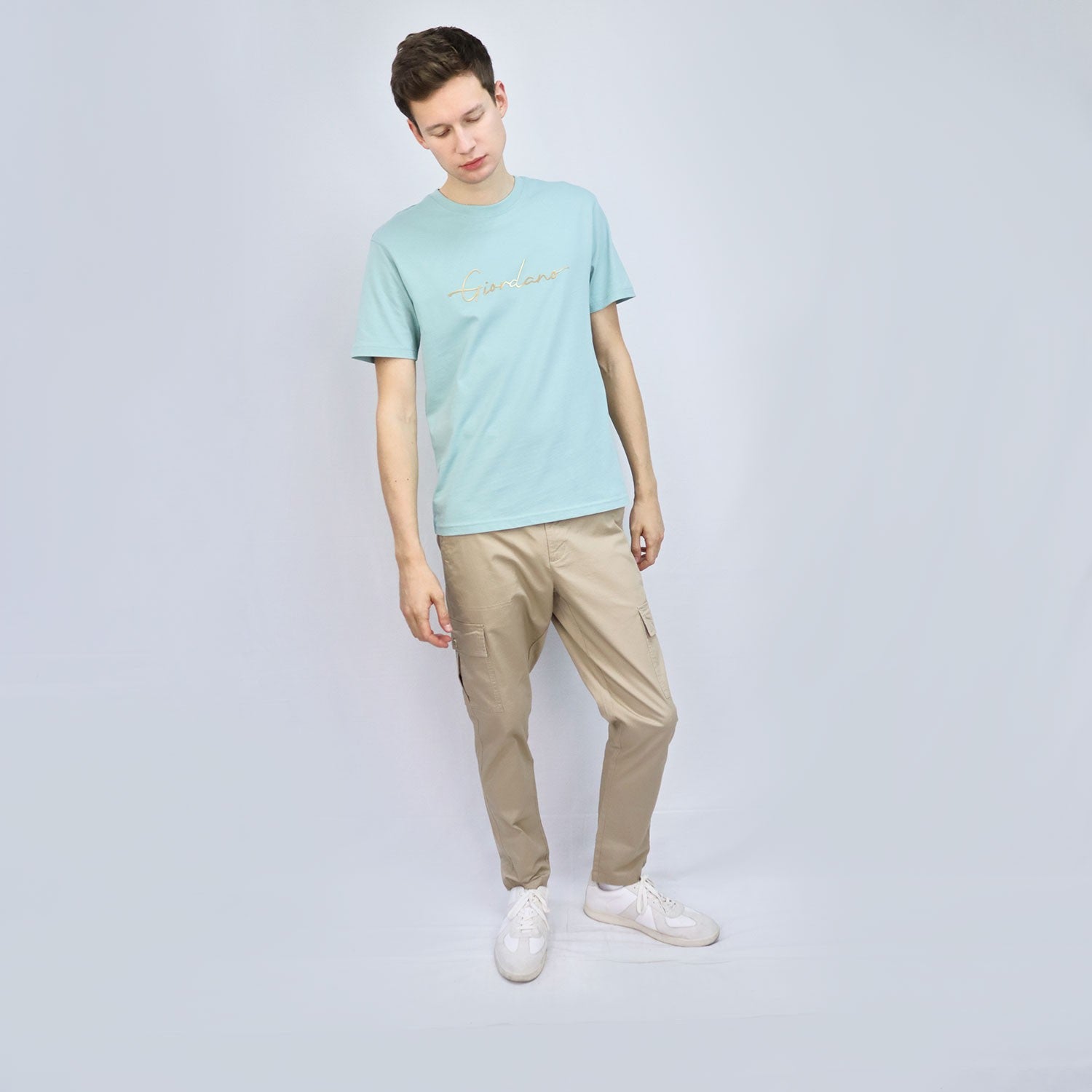 - Style: Men's Giordano Slim Fit Tee with signature print