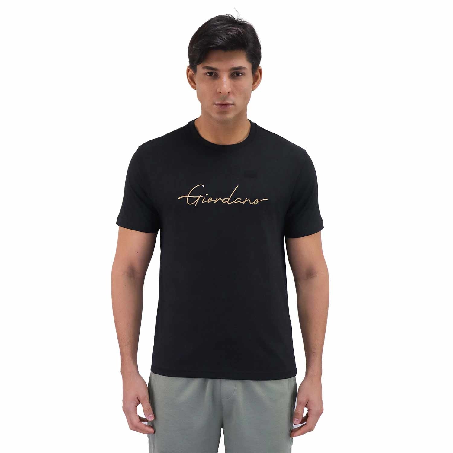 Men's Giordano Slim Fit Tee: Signature Print, 100% Cotton Jersey