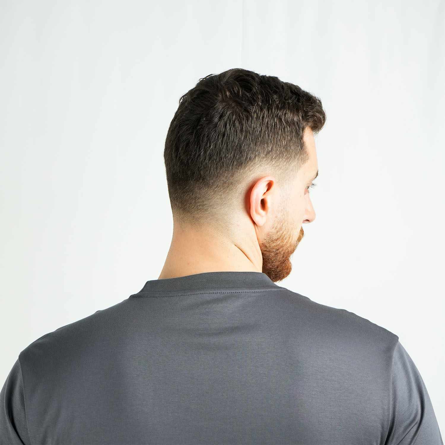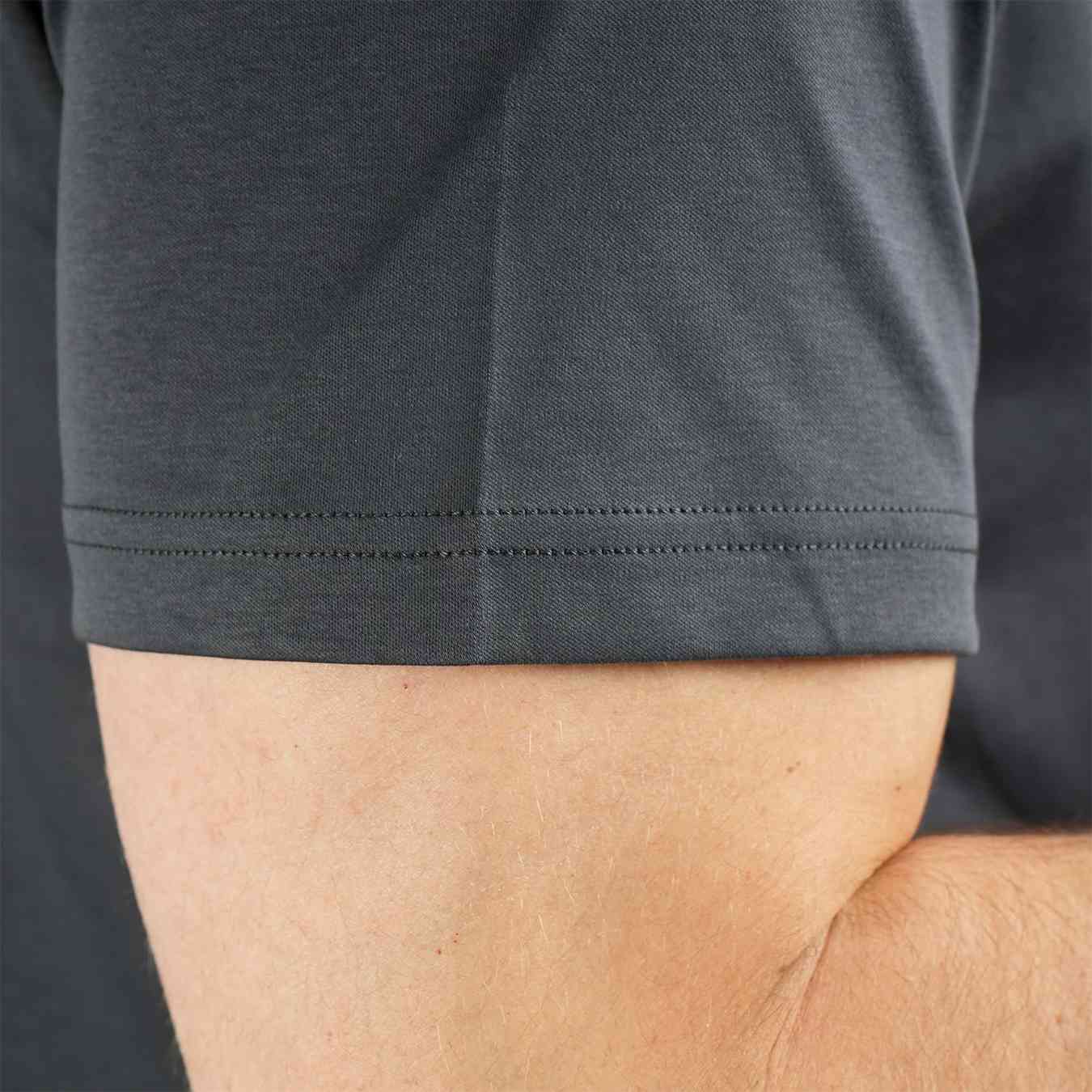 - This t-shirt is made from 100% cotton interlock fabric, known for its smooth, soft, and substantial feel. It features a classic crew neck and short sleeves.