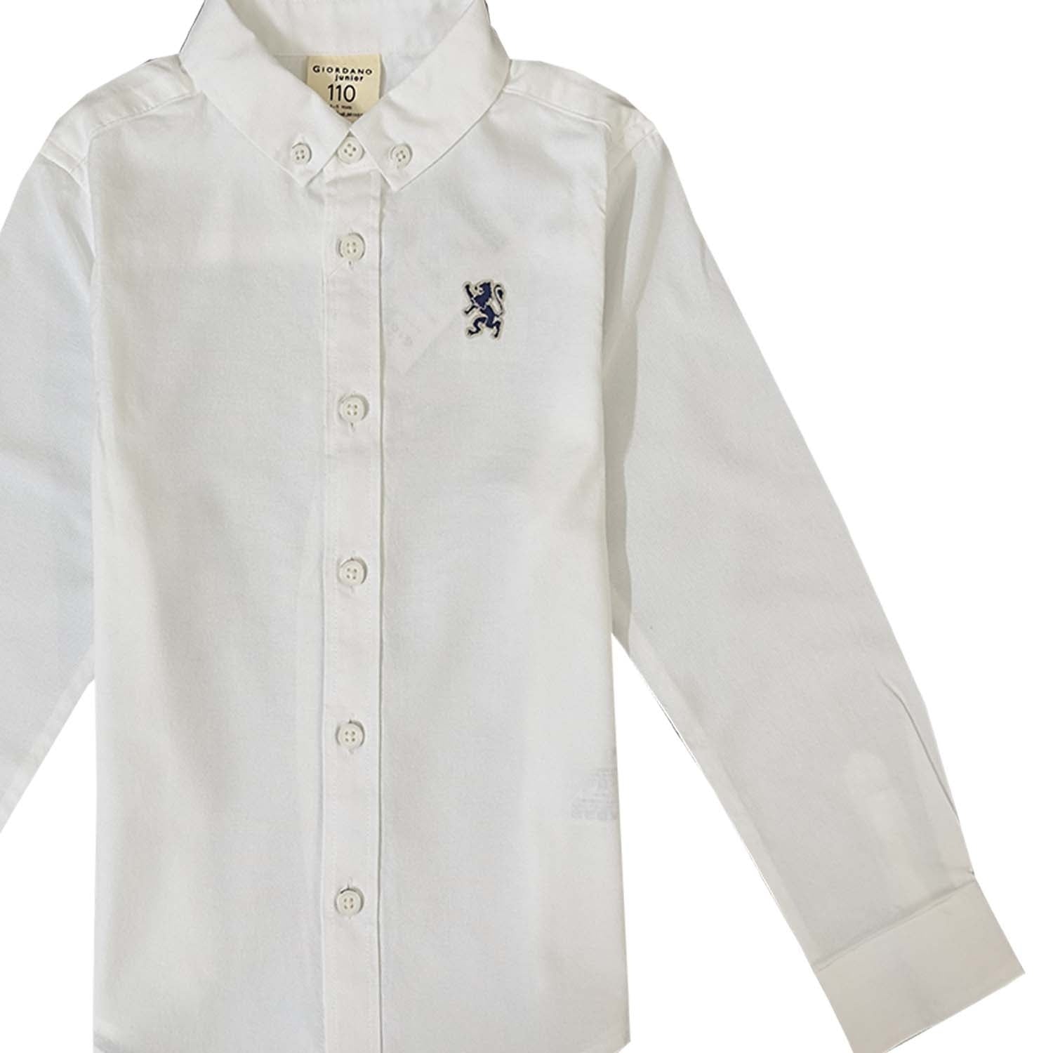 Junior Cotton Oxford Full Opening Long Sleeve Slim Fit Embroidery Garment Wash Shirt